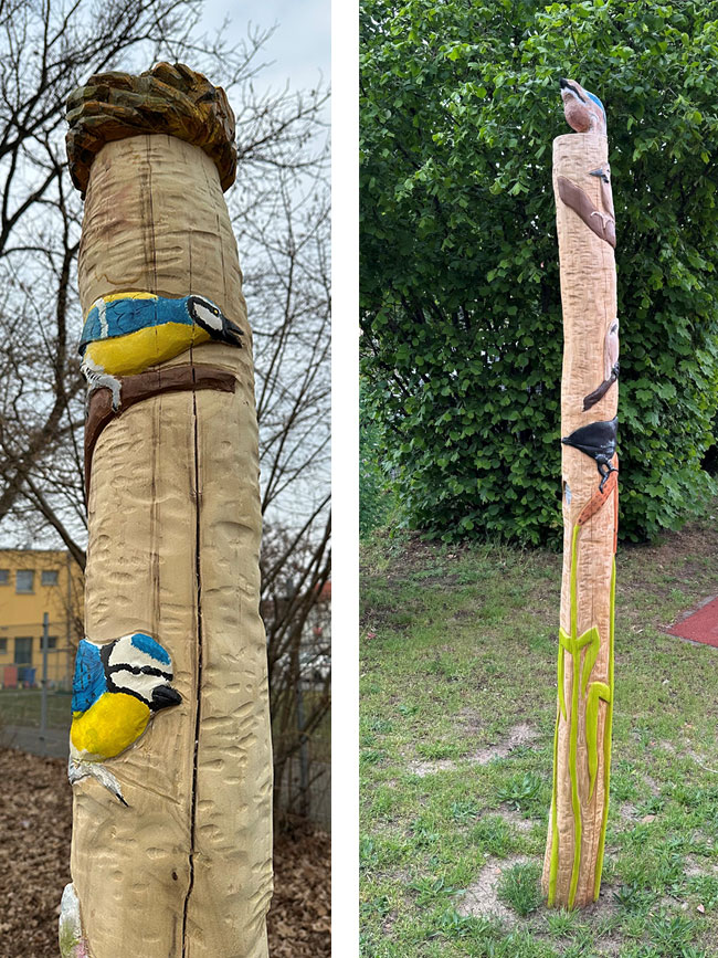 Vom Baumstamm ausgehend fertigen wir in diesem Workshop eine Stele. Im oberen Bereich wird diese dreidimensional ausgearbeitet. In der Rundung des Stammes entsteht ein Relief, z. B. ein Tier oder eine Pflanze. Es darf auch völlig frei in Holz und/oder Stein gearbeitet werden. Farbe kann unterstützend eingesetzt werden. Gemeinsam mit dem Künstler entwickeln Sie ihre Idee und lernen die wichtigsten Techniken. Mit Klöpfel, Beitel und Kettensäge und/oder Steinbildhauerwerkzeug entsteht ein individuelles Objekt für Innen oder Außen. Das großzügige Atelier von Thomas Gröhling, etwas außerhalb von Bamberg, ist ein idealer Ort zum Arbeiten.