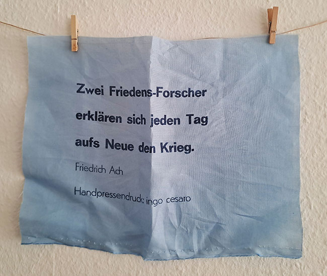 Dieser Workshop für Anfänger und Fortgeschrittene verlangt nach Kopf- und Handarbeit. Wir tauchen gemeinsam ein in das Geheimnis der traditionellen japanischen Kurzgedichte Haiku beim „Kreativen Schreiben“ mit dem bundesweit bekannten Haiku-Publizisten Ingo Cesaro, der seit fünfzig Jahren in dieser Form schreibt und weit über 200 Einzelveröffentlichungen nachweisen kann. Wir bringen die Worte in die festgelegte Form aus drei Zeilen mit einer Silbenzahl von 5 – 7 – 5. Anschließend dürfen wir uns die Hände schmutzig machen, denn wir setzen selbst verfasste Haiku mit Einzellettern (wie zu Gutenbergs Zeiten) und drucken auf der Handnudel eine kleine Auflage zum Mit-nach-Hause-nehmen. Außerdem besteht die Möglichkeit, typografisch mit unterschiedlichen Schriftgrößen und Druckfarben zu experimentieren und Haiku zu gestalten.